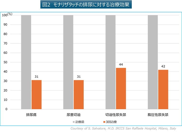 排尿に関する治療効果は図2の通りです。排尿痛・尿意切迫・切迫性尿失禁・腹圧性尿失禁いずれも3回終了後に著明に改善しています。